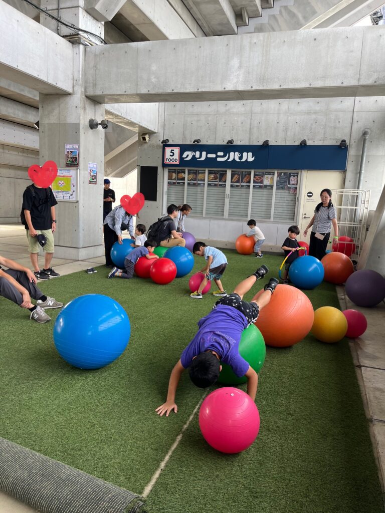 スポーツはバランスボールの他、ボッチャ、フットゴルフ、モルック