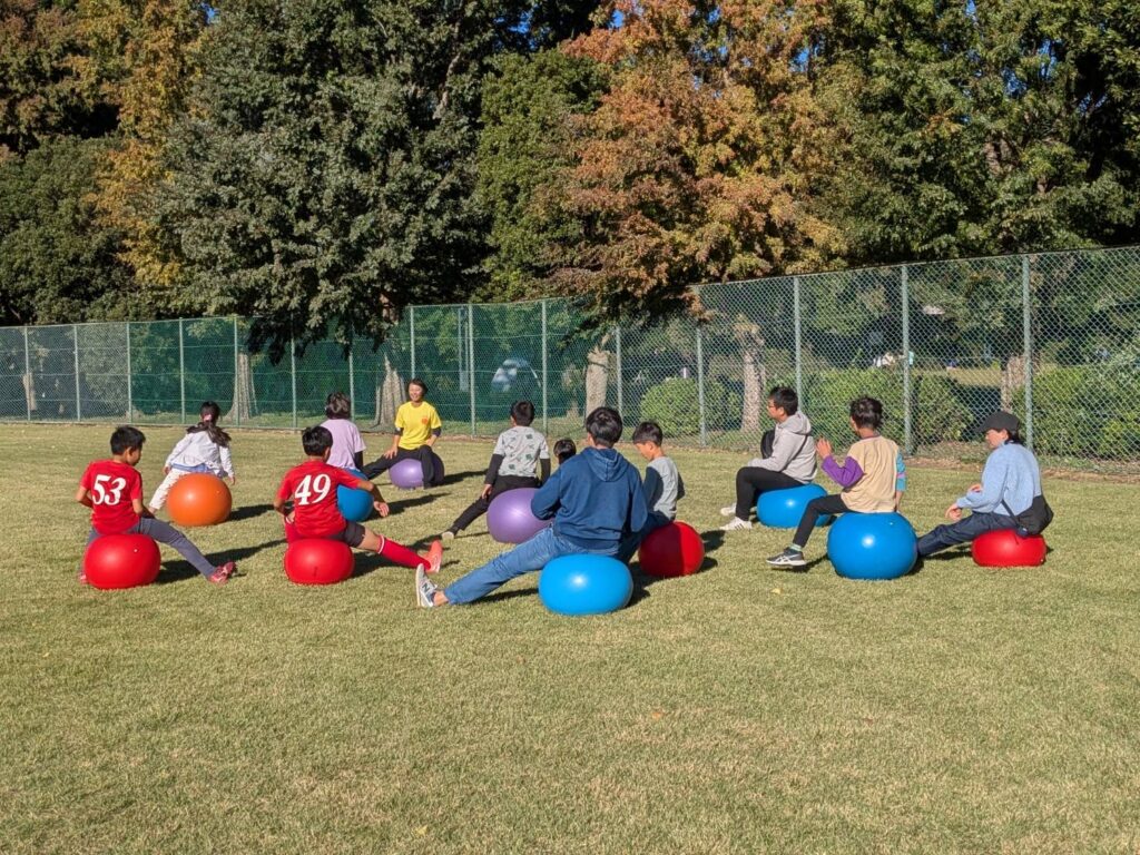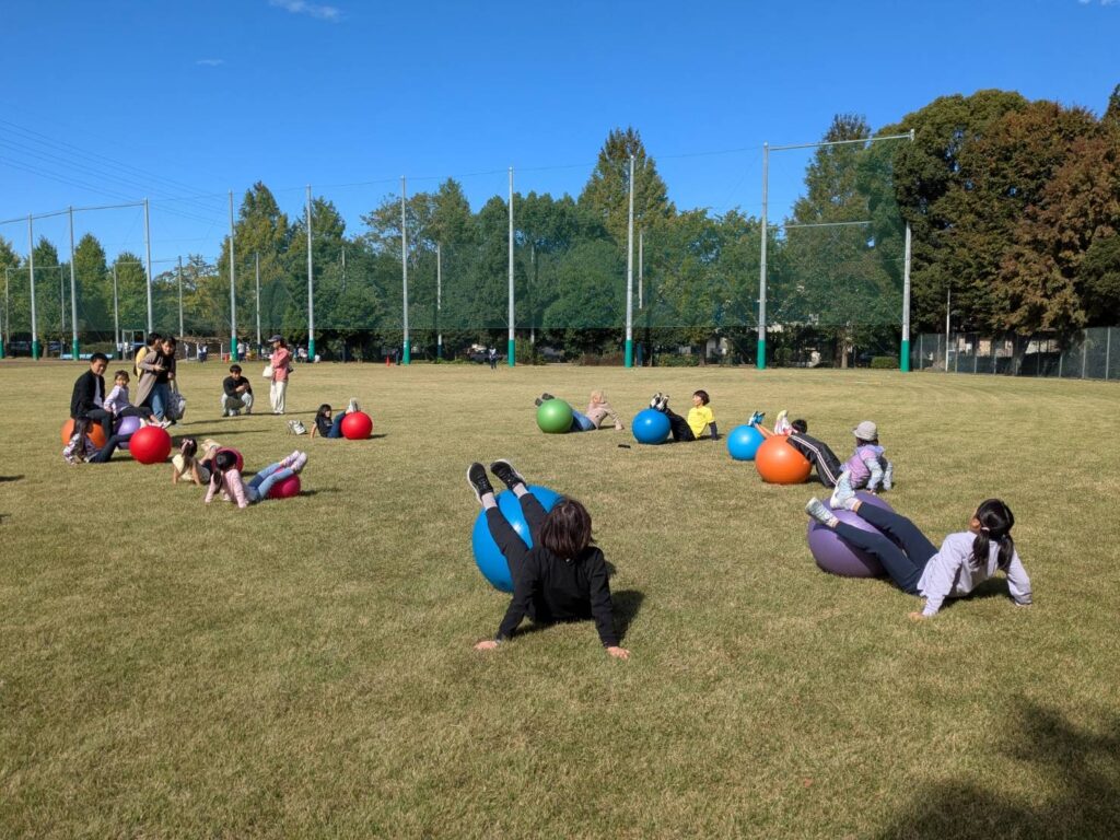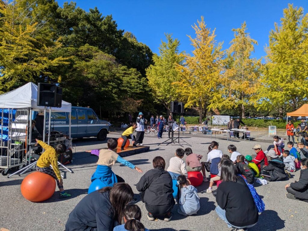 バランスボール紹介のステージでは見ている子供さんたちに